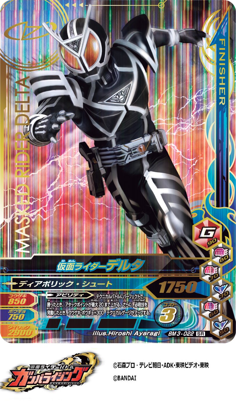 Twitter 上的 Dcd Ganbarizing いよいよ来週稼働です 本日もsrカードを紹介しますよ Sr4枚目は 仮面ライダーデルタ 是非 フルフルフルチャージcpのファイズ カイザでチームを組んでください 仮面ライダーファイズ ガンバライジング 仮面ライダーデルタ